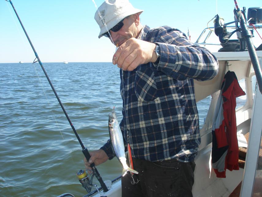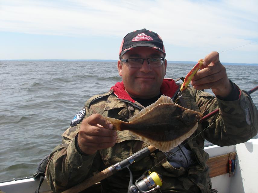 grzybek Napisano 25 Maja 2014 Autor Zgłoszenie Udostępnij Napisano 25 Maja 2014 (edytowane) Popływaliśmy w tygodniu z Krisem po Zatoce Gdańskiej. Szukaliśmy belony, śledzia, dorsza. Znaleźliśmy tylko kilka sztuk centkowanego lamparta - słabo brał, ciężko było go odszukać. Po dwóch dniach znowu ruszyliśmy, tym razem z Zibi i jego synem. Wiało dosyć mocno z południa. Odszukaliśmy fląderkę, ochrzciliśmy kolejnego "wilka morskiego" Śledzia szukał Okienko ale też nie znalazł, sytuacja wciąż się zmienia ale wcale nie na lepsze. Mało ryb, pogoda nie służyła zbytnio wędkowaniu. Mordy opalone, jeśli nie powiedzieć spalone Złowiliśmy w sumie 4 dorsze, jedną flądrę i kilka babek byczych. Pogoda nie rozpieszczała ale co nasze to w nas Chrztu flądrą jeszcze nie widziałem ale bywa i tak Zibi opalony, czasami czuliśmy się jak skwarki na patelni W końcu spotkaliśmy Janka od Okienek na Penetratorze Dzięki chłopaki za wspólną wyprawę. Co niektórzy obawiali się morskiej choroby. Fala była, owszem ale objawów "nęcenia" nie było, prawda ? Strach ma wielkie oczy, nie ma się czego bać. Po prostu - czeba paczeć na widnokrąg a nie pod nogi i wszystko będzie OK. Pozdrowiska. Edytowane 26 Maja 2014 przez grzybek Odnośnik do komentarza Udostępnij na innych stronach Więcej opcji udostępniania...