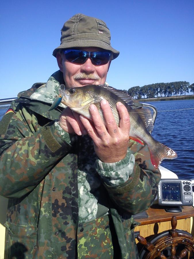 Złowiliśmy kilka okoni i okonków, na koniec kolega wyjął sandacza.