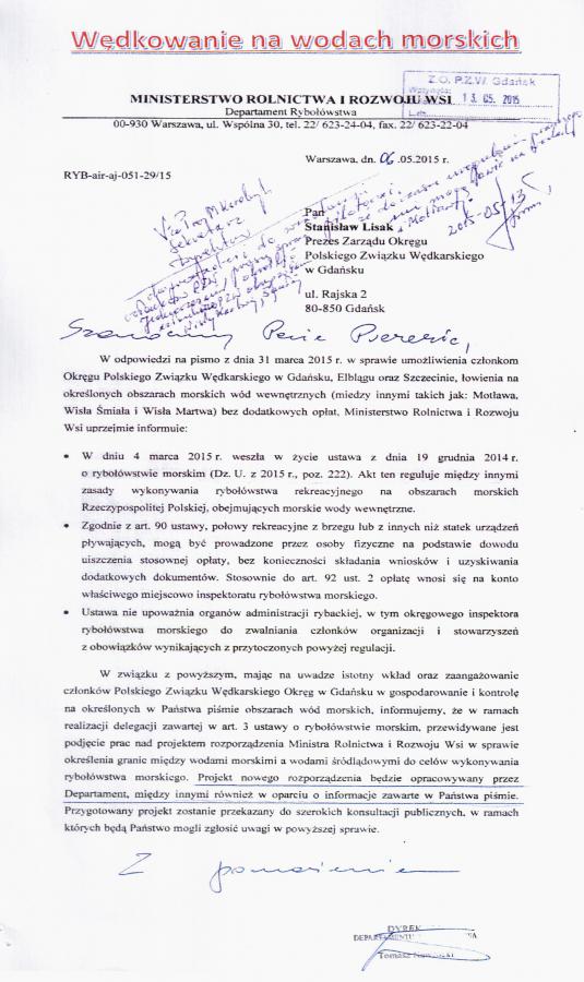 grzybek Napisano 23 Kwietnia 2015 Zgłoszenie Napisano 23 Kwietnia 2015 (edytowane) Okazuje się, że została zerwana umowa na wędkowanie w wewnętrznych wodach morskich dla członków PZW. Chodzi o odcinki wód Martwej Wisły, Wisły Śmiałej oraz kanałów Motławy będących w gestii Okręgowych Inspektoratów Rybołówstwa Morskiego. Kolejna wojna, jakby mało było tego bajzlu. Edytowane 23 Kwietnia 2015 przez wind edycja linku