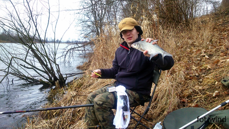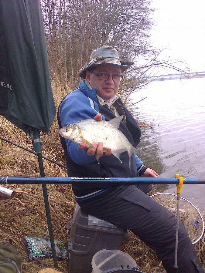 wind Napisano 7 Marca 2015 Autor Zgłoszenie Napisano 7 Marca 2015 Pawłowi udało się wygospodarować wolną sobotę i zdecydowaliśmy się ponownie wyruszyć nad Nogat. Byliśmy mniej więcej o tej samej porze co tydzień temu ale wędkarzy tym razem było mnóstwo. Musieliśmy nieco cofnąć się w kierunku mostu drogowego w Jazowej i szybko znaleźliśmy dość ciekawe miejsce. Było ciut ciasno ale tworzymy już w miarę zgrany duet więc potrafimy się spasować na niewielkiej przestrzeni. Zanęta do wody, szybkie gruntowanie i ... ruszyliśmy. Brania były jak tydzień temu całkiem intensywne, ilościowo może wyniki były słabsze niż poprzednio ale poprawiło się jakościowo. Brania dość szybko ustały i donęcanie nie przynosiło oczekiwanego efektu ale każdy po kilka ładnych leszczyków złowił. A @Paweł miał takiego: Nogat w Jazowej to ciekawa woda, obfitująca w ryby i wędkarzy, a nawet PSR się pokazało . To moja druga kontrola w ciągu trzech dni .