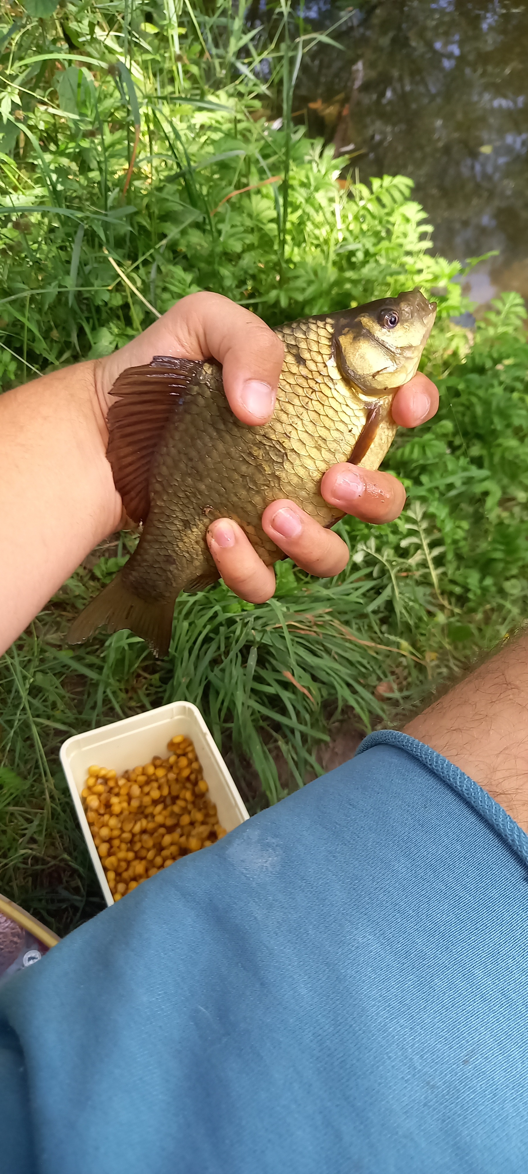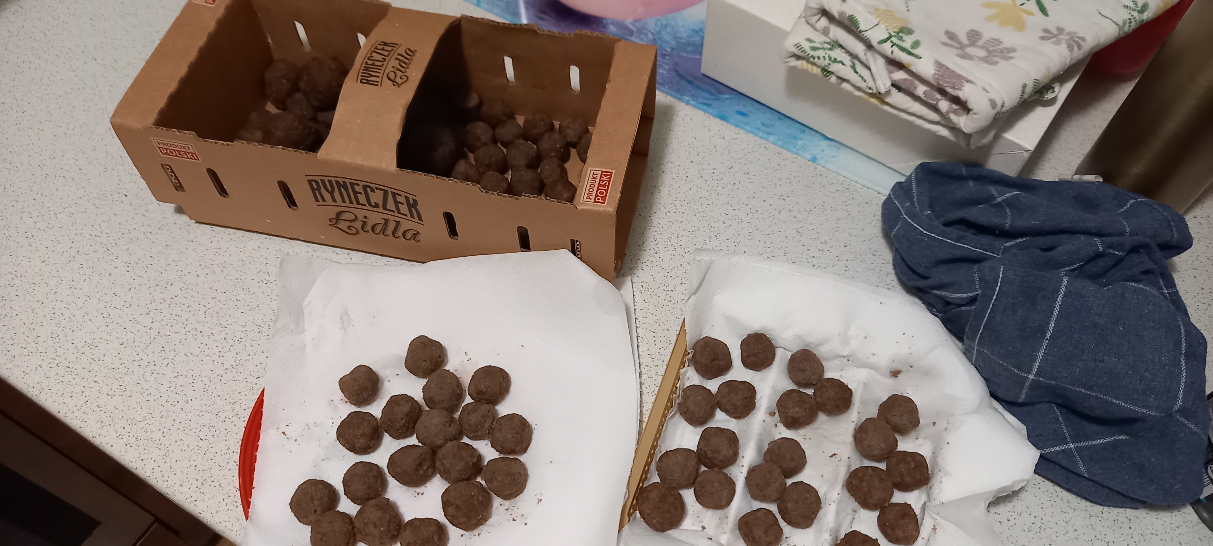 mikolaj łódzki Napisano 30 Sierpnia 2024 Autor Zgłoszenie Napisano 30 Sierpnia 2024 Z konserwantów to znam sól ,cukier ,alkochol . Ale w barwinikach to co podaliście to znam dobrze używałem w kuchni. Po prostu te kulki zrobiłem na szybko wstałem pięknego dnia posiedziałem na komputerze ,posprzątałem i postanowiłem że zrobię kulki. Poszedłem do sklepu kupiłem aromat pomarańczowy, mleko w proszku. Rivanol akurat miałem w domu wiem że niektórzy barwili nim ciasta, ziarna i stosowali właśnie żeby ziarno nie kwaśniało. Postanowiłem więc że dodam ot tak na test. Kulki dziś testowałem niestety karpie omiały szerokim łukiem. Ale brały. Dziś na jakość nie ilość. Jeszcze był jeden kroczek ale to go pomijam. Przez przypadek wyszło takie pikne zdjęcie. 2
